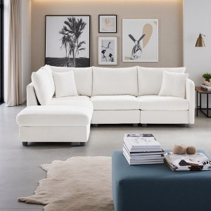 89" Modern L-Shaped Modular Sectional Sofa with Ottoman & Pillows