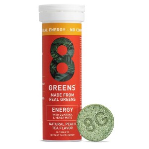 Natural Energy: No Spike, No Crash. Just 8 REAL greens PLUS Guarana, Yerba Mate and Coffeeberry—3 plant-based ingredients for a healthy boost of natural energy. 8Greens Mega Energy Tablets are a tasty and reliable source of caffeine in its most natural form to combat any busy schedule, any time of day. One tablet helps to increase productivity, aid in physical performance, reduce tiredness and fatigue, all in a delicious, natural Peach Tea flavor.