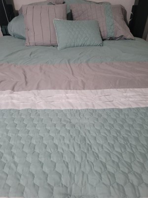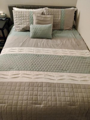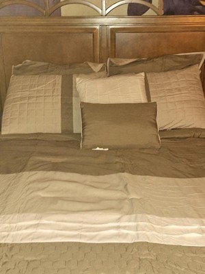 - Chic Transitional Style – 8-piece comforter set features a pieced microfiber design with quilted, pleated, and pintuck details for added texture and dimension
