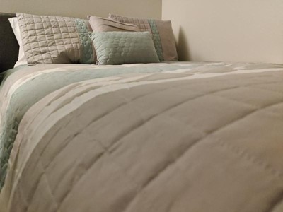 [This review was collected as part of a promotion.] it is one of my favorite beding set, Love the soft colors, go great with brighter accents. The extra pillow I bought. We love our pretty new set! Perfect for my coastal decorated home. Not an extremely high quality, Play Video The set is beautiful; lightweight, soft, warm. Love this set, The fabric for the pillows is very thin but it is very pretty. Words can't describe how perfectly this bedding fit into my vision for my bedroom. The colors are amazing.