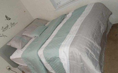 [This review was collected as part of a promotion.] I received the 510 Design Tinsley 8 Piece Comforter Set to try for free in exchange for my honest review. The fabric is very soft. The product quality doesn't disappoint and after one wash remains the same. The aqua color makes the room feel calm.