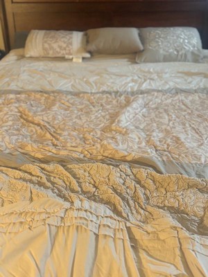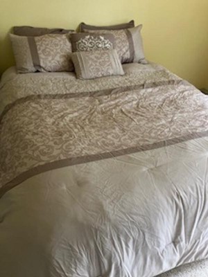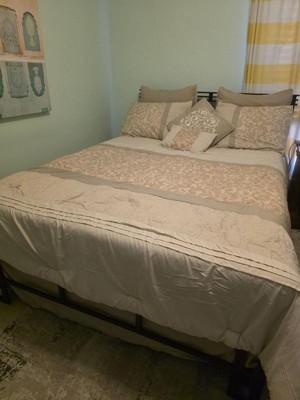 - Set includes comforter, bedskirt, 2 shams, 2 euro shams, and 2 decorative pillows