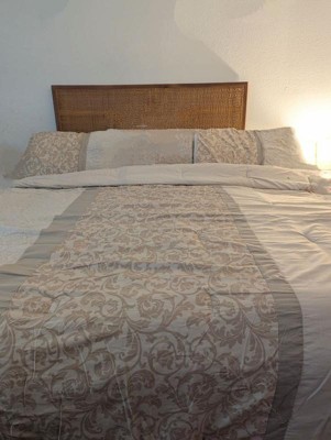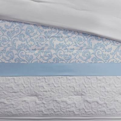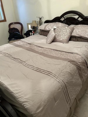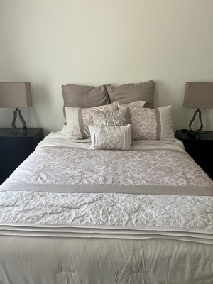 - Transitional 8 piece comforter set in quilted, printed and pintucking details