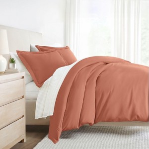 Product Name: 8PC Complete Bedding, Solid Duvet Cover, White Comforter and Patterned Sheet Set - Becky Cameron, Soft Stitch Stripe Clay, King