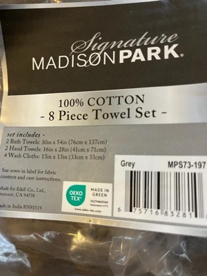 Madison Park 8pc 100% Cotton Highly Absorbent Bath Towel Set