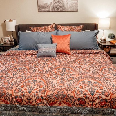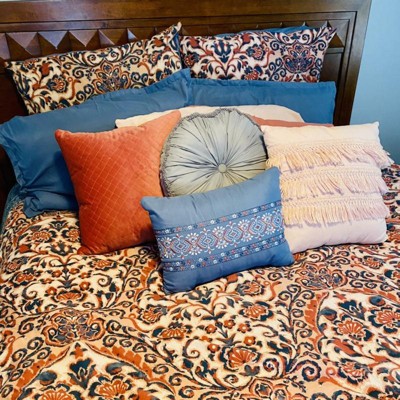Includes: 2 Decorative Pillows, Queen Comforter, 2 Standard Shams, Bed Skirt, 2 Euro Shams
