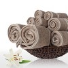 - PRODUCT DETAILS – Materials: 100% Cotton and 575 GSM. Dimensions: Bath Towel: (L) 53” x (W) 27.5”; Hand Towel: (L) 27.5” x (W) 16.5”; Fingertip Towel: (L) 18.5” x (W) 11.75”; Washcloth: (L) 12.9” x (W) 12.25”. Color: Taupe.