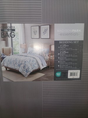 The Madison Park Essentials Sofia Reversible Comforter Set with Sheet Set offers a beautiful update for your entire bed. A botanical print, in soft blue hues, adorns the face and the reverse of comforter, creating two distinct and stylish looks. The matching reversible shams (1 in Twin Sizes) coordinate perfectly with the comforter, while an oblong decorative pillow adds the finishing touch. Also included is a patterned blue sheet set that completes this reversible bedding set. Bringing the best in health and wellness, this bedding set also features an anti-microbial treatment that provides built-in freshness protection, reducing the growth of odor causing bacteria and keeps fabric lasting longer. This bedding set is also OEKO-TEX certified, meaning it does not contain any harmful substances or chemicals, ensuring quality comfort and wellness. This bedding set may come in rolled or compressed packing and will need to be fluffed up. Use a steam iron to help remove wrinkles easier.