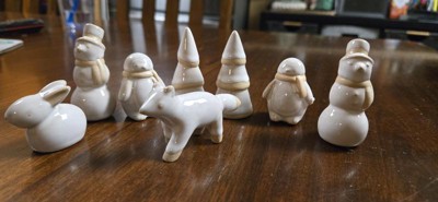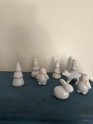 Adorable 8 pack ceramic figurines! This set is the perfect decor for winter and the upcoming holiday season. These would be cute on a mantle, entryway table, powder room or really just about anywhere.