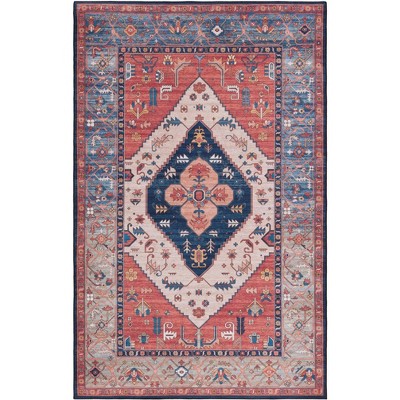 8x10 Large Washable Boho Vintage Area Rug Non-Slip Low Pile Machine Washable Carpet for Living Room, Bedroom, Office, Dining Room Kitchen Cyan-blue