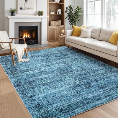 8x10 Machine Washable Area Rug for Living Room, Solid Textured Non-Slip Carpet, Stain-Resistant Farmhouse Accent Rug for Bedroom, Navy Blue
