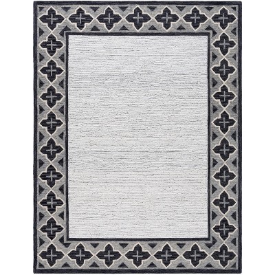 8x10 Modern Bordered Washable Area Rug - Non-Slip Low Pile Indoor Carpet for Living Room, Bedroom, Dining Room, Home Office Apartments Gray