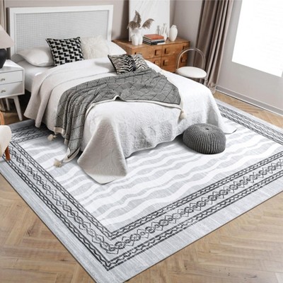 8x10 Modern Washable Bordered Rug, Soft Low-Pile Non-Slip Carpet for Living Room, Bedroom, or Dining Space, Cozy Foldable Indoor Area Rug