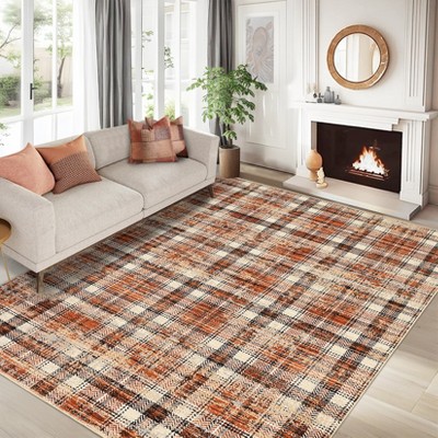 8x10 Non-Slip Machine Washable Runner Rugs Low Pile Area Rugs Non-Shedding Foldable Floor Mats for Hallway, Bathroom Kitchen Orange
