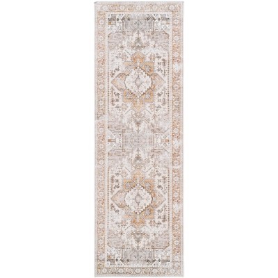 8x10 Oriental Vintage Bordered Area Rug - Non-Slip Ultra-Thin Washable Carpet for Living Room, Bedroom, Dining Room & Office, Rusty