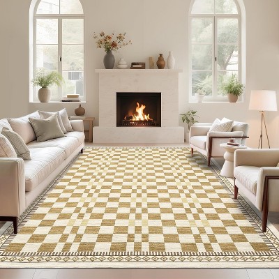 8x10 Washable Modern Area Rug, Non-Slip Foldable Distressed Print for Living Room Bedroom, Yellow