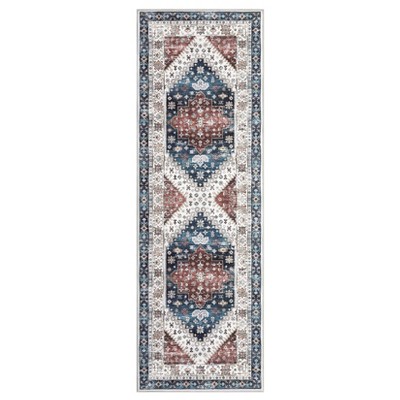 8x10 Washable Modern Stripe Rug Non Slip Foldable Carpet Low Pile Stain Resistant Floor Mat for Living Room Bedroom Office, Blue