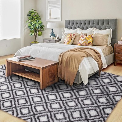 8x10FT Christmas Area Rug, Xmas Tree Washable Soft Carpet with Non Slip Backing, Low Pile Stain Resistant Floor Mat for Living Room, Bedroom, Grey