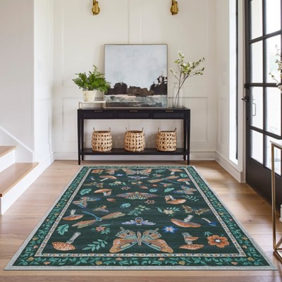 8x10FT Modern Washable Area Rug, Abstract Print Floor Cover with Non Slip Backing, Low Pile Stain Resistant Indoor Carpet for Bedroom, Black