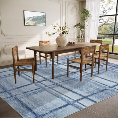 8x10FT Modern Washable Area Rug for Living Room, Bow-knot Printed Floor Rug with Non Slip Backing, Low Pile Stain Resistant Carpet, Blue