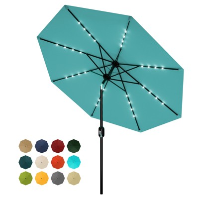 9/10 ft Patio Umbrella with Solar Lights, 8 Ribs Outdoor Market Table Umbrella with 40 LED Lights & Tilt Crank for Pool, Deck, Backyard