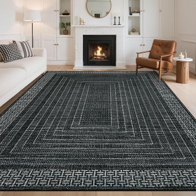 9*12FT Butterfly Area Rug: No-Slip, Washable & Low-Profile for Bedroom, Living, & Dining Rooms-Black