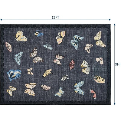 9*12FT Machine Washable Boho Area Rug: Distressed Non-Slip Stain-Resistant Carpet for Living Room, Bedroom & Dining Space-Black