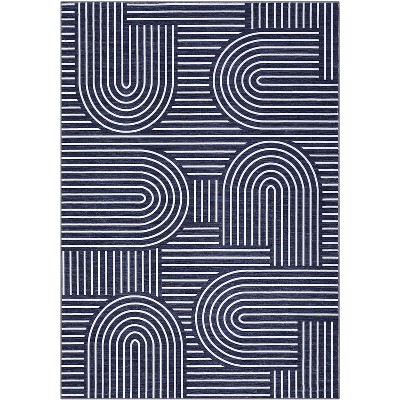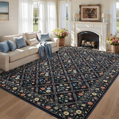 9*12FT Washable Floral Scalloped Runner – Non-Slip Low-Pile, Stain Resistant Boho Rug for Kitchen, Hallway, Laundry Room, Bathroom, Bedroom(Blue)