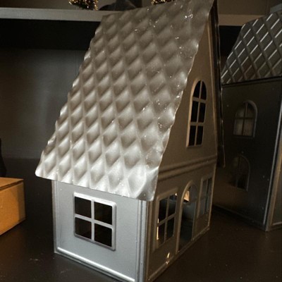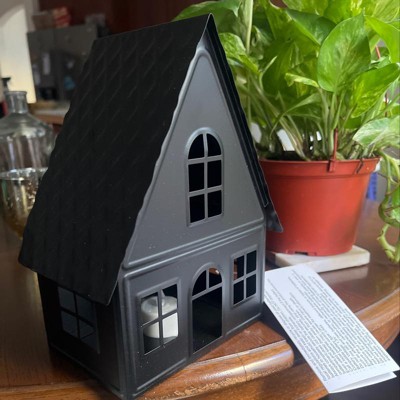9" Lit Metal House Christmas Village Building - Wondershop™ Black: Battery-Powered Indoor Decorative Object