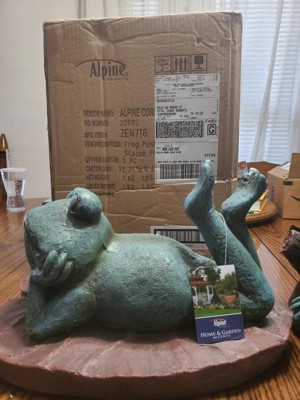 [This review was collected as part of a promotion.] Got to try out this awesome decorative indoor/ outdoor Alpine 9" Sunbathing Frog Garden Statue made by Alpine and I love it. There are many to chose from and very stready and love it. Garden statue Lawn figurine features a happy sunbathing frog for a fun addition to your home's outdoor area Durable lawn statue : Constructed from resilient MGO, the yard decoration is weatherproof and rust-resistant for years of quality use on your lawn or porch. Outdoor statue features intricate and animated details for a perfect addition to your home's outdoor area Add one or multiple statues to create an enchanted garden display