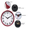 Keep track of time without disturbing co-workers by using this Metro resin analog wall clock. The silent hand movements ensure quiet operation to keep noise to a minimum, while the broad face and large numerals make this clock easy to read from afar. This Infinity Instruments Metro clock has an elegant design and sleek red case for easy matching.