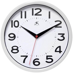 Keep track of time without disturbing co-workers by using this Metro resin analog wall clock. The silent hand movements ensure quiet operation to keep noise to a minimum, while the broad face and large numerals make this clock easy to read from afar. This Infinity Instruments Metro clock has an elegant design and sleek white case for easy matching.