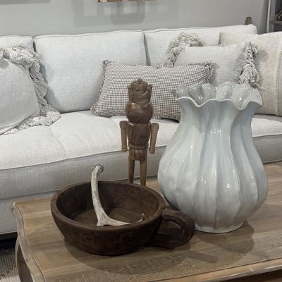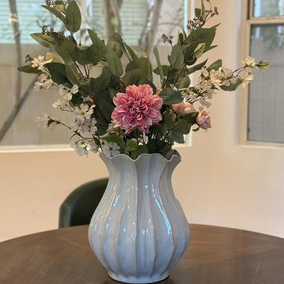 Add a touch of sophisticated style to your home decor with the Pleated Ceramic Vase from Hearth & Hand™ with Magnolia. This sour cream-color vase features a pleated design with dark hues for a rustic finish. Made of ceramic, this watertight vase is great for displaying your favorite fresh or artificial blooms.