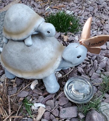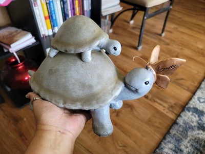 9" Polyresin Indoor/Outdoor "Love" Turtle and Butterfly Decorative Garden Statue Gray - Alpine Corporation