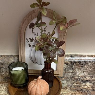 Transform your home into a green oasis with this 9" Rusty Quince Artificial Fall Arrangement from Hearth & Hand™ with Magnolia. This artificial plant features a single stem with multiple branches, each covered with realistic quince leaves for a natural appearance. This polyester faux plant sits in a glass container for a modern touch. Suitable for indoor use, this faux plant works as a stunning centerpiece for your home decor.