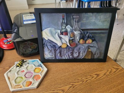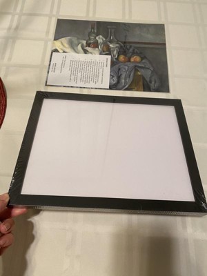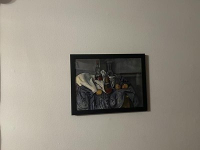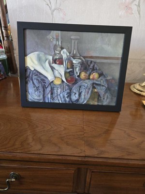 This is such a great mix of the old and the new! The classic Cezanne print looks fresh and updated in the crisp, black frame. The print was a nice quality paper stock, and the colors printed are rich and deep. I loved the easy to use clips on the back. So many frames lately have the little metal flaps that hurt your fingers to bend up and down, but these were the higher quality swivel clips that will last much longer. Nice to have the stand on the back to use this on a table top, but the frame also came with good quality sawtooth hangers for wall use as well. This made a great addition in my dining room!