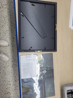 I have some good and some bad to say about this product. First, the good. The picture is good quality; the colors are rich and the image crisp. The frame can be oriented portrait or landscape, and comes with saw tooth hooks preinstalled for both directions. It also has an easel back for use on a table/shelf. The frame is straight forward. Simple, black, a nice mid-width. It has plastic instead of glass, which is maybe not as nice, but is lighter for hanging. The downside I experienced was that the frame itself was broken (see pic). The box was undamaged which makes me think it was a quality control issue. I don’t know if that’s an ongoing problem with this product, or if I just got unlucky, but that’s my only area of concern. I think if you got one that wasn’t broken, it would be a good product.