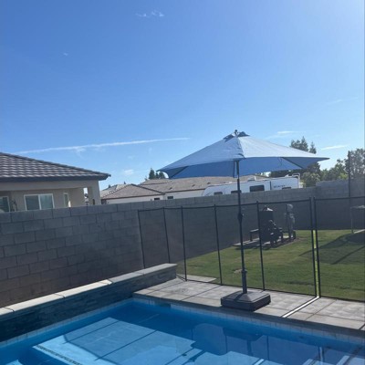 This umbrella is perfect for our backyard and around our pool. The color blue is nice. I wish I would’ve bought 2 more in the same color. It does fade in the sun. Also, it rusts on the bottom and has stained our pool. Just take it out each day and don’t leave it in the water.
