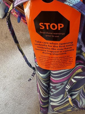 Love this umbrella! The whole design is so thoughtful-the carrying case, the strap, the very sturdy fabric, and big shade area. The pattern is so bright and will add beauty to any outdoor setting. Easy to set up.