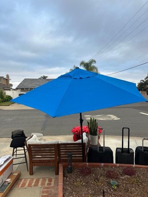 [This review was collected as part of a promotion.] This umbrella very nice!! The blue color really brightens up our backyard. It is very easy to open and close. This umbrella is excellent with nice sturdy ribbings that appear not to be able to fail at all.