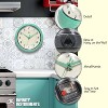 The Retro Round Mint Green Wall Clock's stunning green frame and unique retro design sets it apart from the rest. Infinity Instruments Retro Wall Clock collection has been a staple in the interior design/wall décor accessories for well over a decade. It has proven the test of time with a clean retro look that fits most, if not all, home décor layouts. There have been many copy-cats but there is only one true Retro Aluminum Wall Clock.