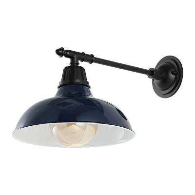 The angled metal shade on our two-tone wall light features a retro look in classic navy and white