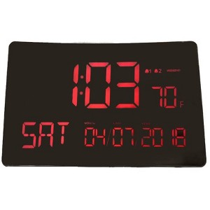- STYLISH: Easy to read LED time digits, displays time, indoor temp, alarm with snooze. Can be hung on a wall or set on a desk