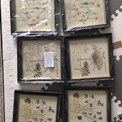 This square wood framed wall décor with floral images and information is a wall décor piece that features a square wood frame with a floral image and some facts or folklore about it. The wood frame has a black color and a textured surface. The frame has a heavily distressed finish that gives it a rustic and antique look. The paper has a printed design of a floral image and some information about it. The information includes the name and the species of the flower, as well as some old wives' tales or practical tips related to it. The floral images are colorful and realistic, creating a beautiful visual effect. The wall décor piece has an integrated hanging mechanism that allows it to be hung vertically. They can be hung together in a grouping or in different locations around the room to help tie the space together. It is perfect for decorating any living room, bedroom, kitchen, or hallway. Each wall décor piece measures 9.75 inches in length and 9.75 inches in height. These wall décor pieces are a fun and unique way to add a touch of nature to the home.