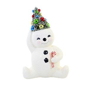 Christmas 9.75 In Retro Candy Cane Snowman , Decorated Tree (1PC)