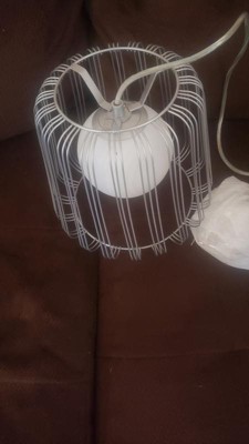 [This review was collected as part of a promotion.] This pendant light is so simple yet adds that decorative look that is just so beautiful . It has has nice white glass globe that is surrounded by a caged metal . It is nice to put anywhere that you see fit . It looks great over a dinning table or in the corner of the room . The lighting is soft and elegant but also creates a industrial look .
