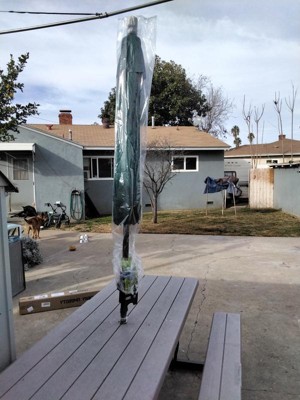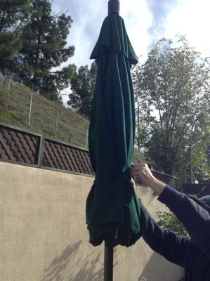 [This review was collected as part of a promotion.] Just put up my new green California Umbrella and it looks great. I selected the bronze color pole with crank that tilts becuase it makes it more versatile for our use. The pole is sturdy and the umbrella opens smoothly and with ease. Looks great in my sunny California yard.