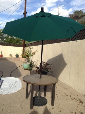 [This review was collected as part of a promotion.] This is a beautiful umbrella and the green color is a great contrast to our house. The meal is so much more enjoyable when you have such great shade from the sun. The tilt option Allows you to adjust the shades exactly where you need it.