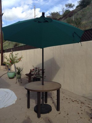 [This review was collected as part of a promotion.] I tried California Umbrella 7.5' Sun Master Series Patio Umbrella with Bronze Aluminum Pole Fiberglass Ribs Collar Tilt Crank Lift With Sunbrella 1A Forest Green Fabric. It's a quality Umbrella that has a crank to open. It's Aluminum pole is heavy duty and fits right into all our outside tables. The fabric is well made and looks great around the pool. California umbrellas has been around 65 years and the rich color and sturdy construction makes you feel like it will last for quite a few summers.