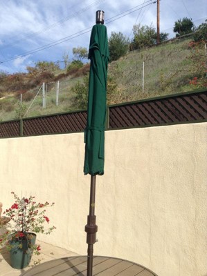[This review was collected as part of a promotion.] We love our California Umbrella Sun Master Series Patio Umbrella. It was very easy to put up. It comes in two pieces and we put it up in minutes. It is very durable and high quality. The pole is a nice bronze color and a forest green umbrella that is a beautiful deep green that adds nice color to our yard, and blocks the sun perfectly. The crank allows me to wind the umbrella up/down effortlessly. The tilt is a wonderful option to block the sun from another direction. The spokes on the underside of the umbrella are heavy duty. This is a very sturdy and beautiful umbrella.